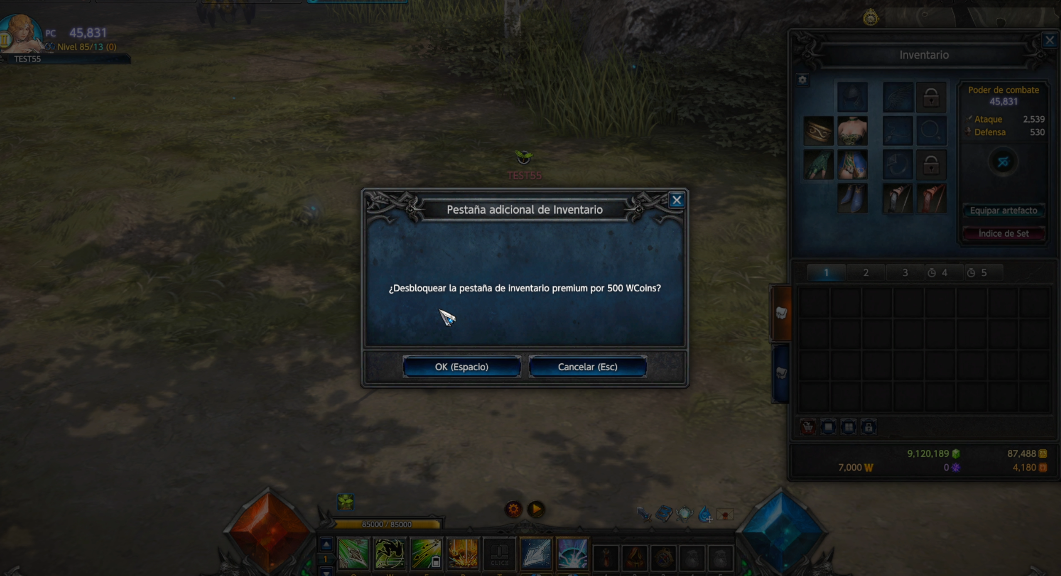 La pestaña de inventario que antes se conocía como Premium ahora funcionará como una pestaña de inventario expandido. Esta podrá adquirirse con WCoins y ampliará significativamente el espacio disponible de tu personaje, otorgando 6 pestañas extra de inventario.