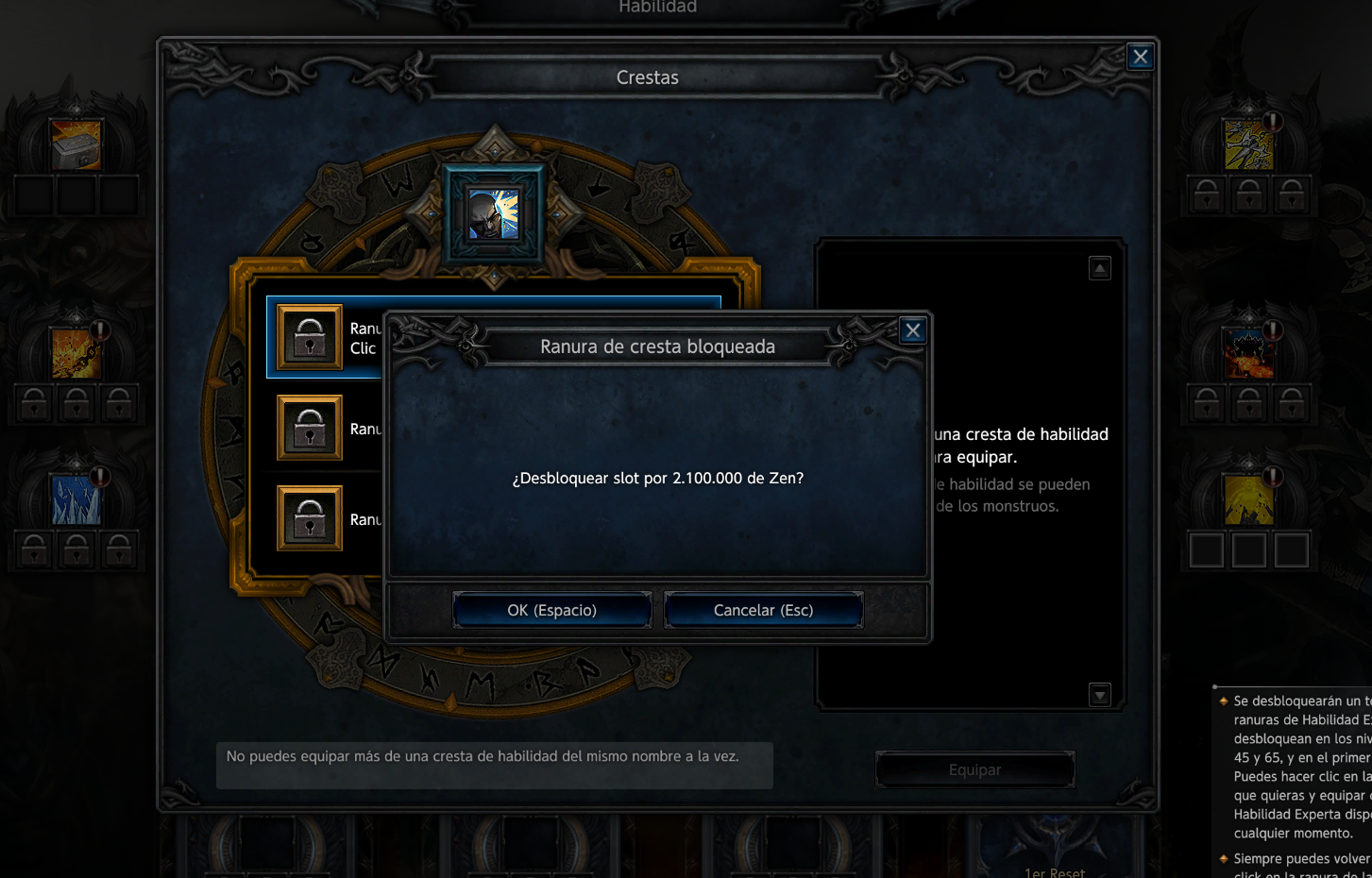 - Las ranuras de crest de habilidad ya no se desbloquean subiendo maestría al usar la habilidad. Ahora se desbloquean comprando con Zen directamente desde la ventana de crests.