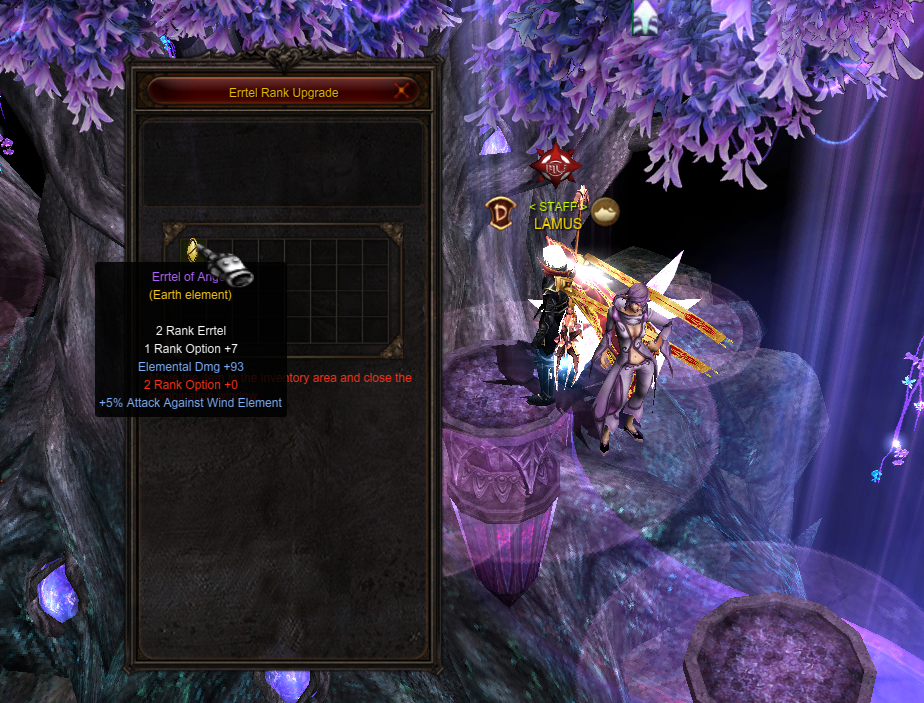 Los Errtel son piedras que podemos engarzar dentro de los pentagramas para obtener beneficios adicionales, para insertar el Errtel es necesario desequipar el pentagrama y abrir su interface con CTRL + Click derecho.