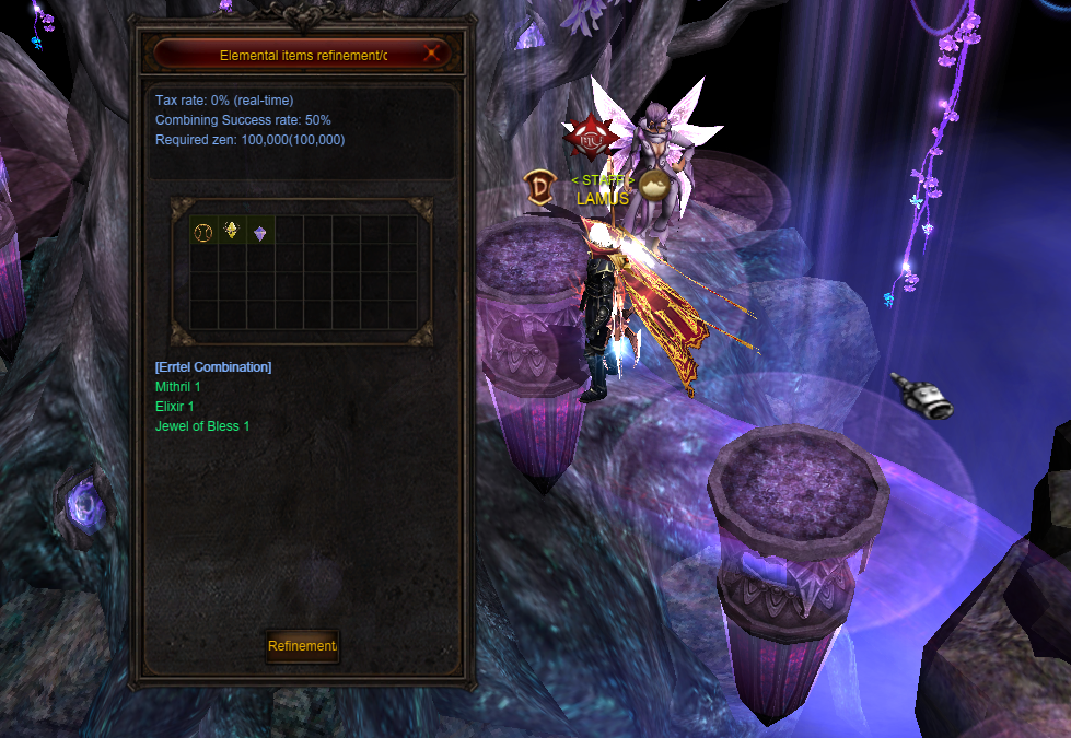 Para crear un Errtel debemos dirigirnos a Acheron (39, 215) y hablar con el NPC Adniel (opción Refinement/Combination).